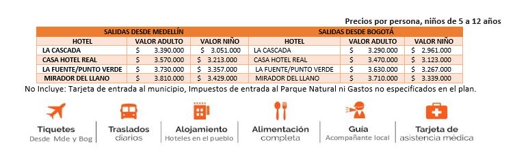 • Traslado en lancha por el río Guayabero, traslado en campero tipo safari disfrutando del paisaje llanero, caminata ecológica hasta el parque natural observando la vegetación típica de la serranía y la velloussea (flor insignia de La Macarena)